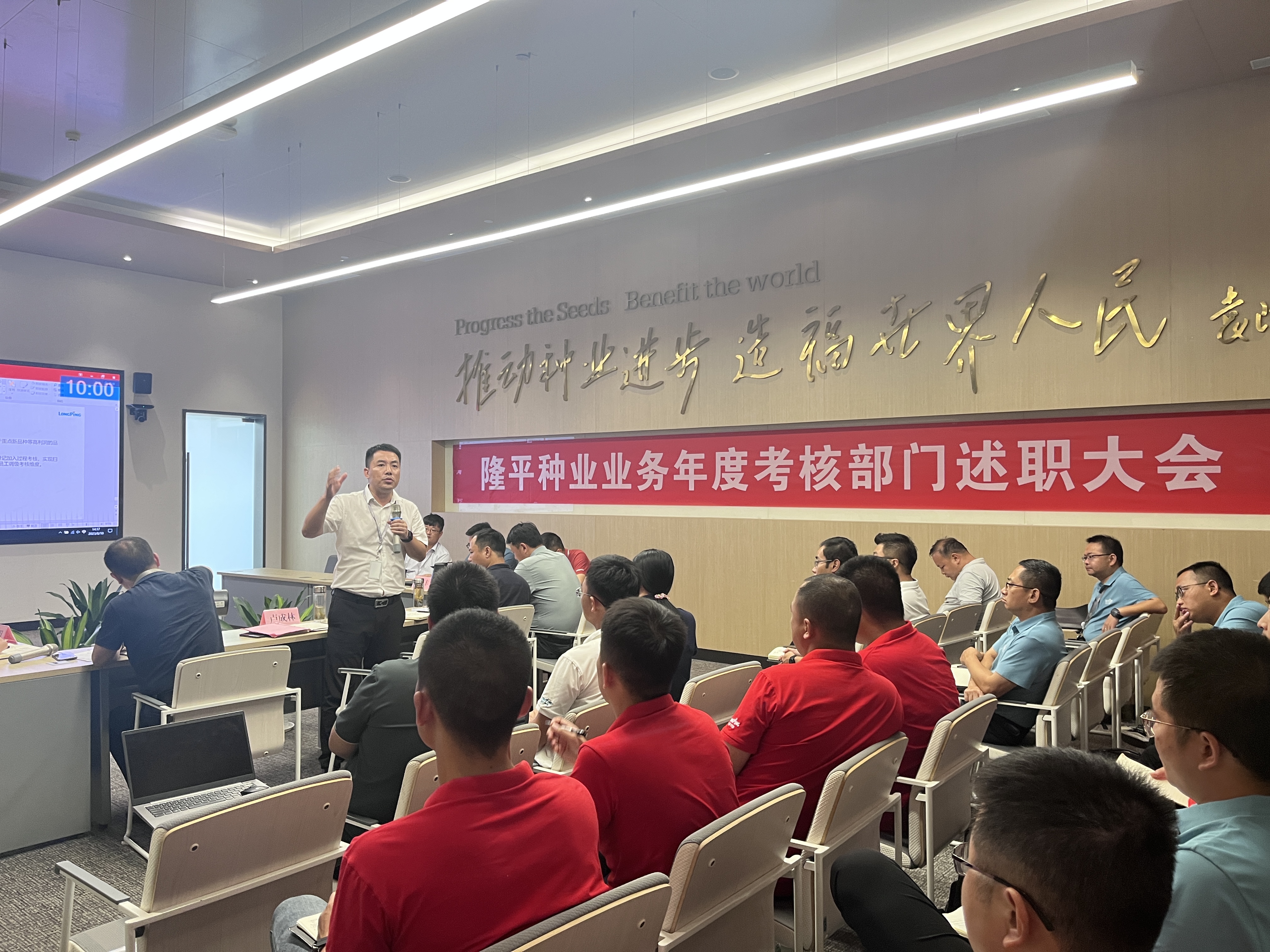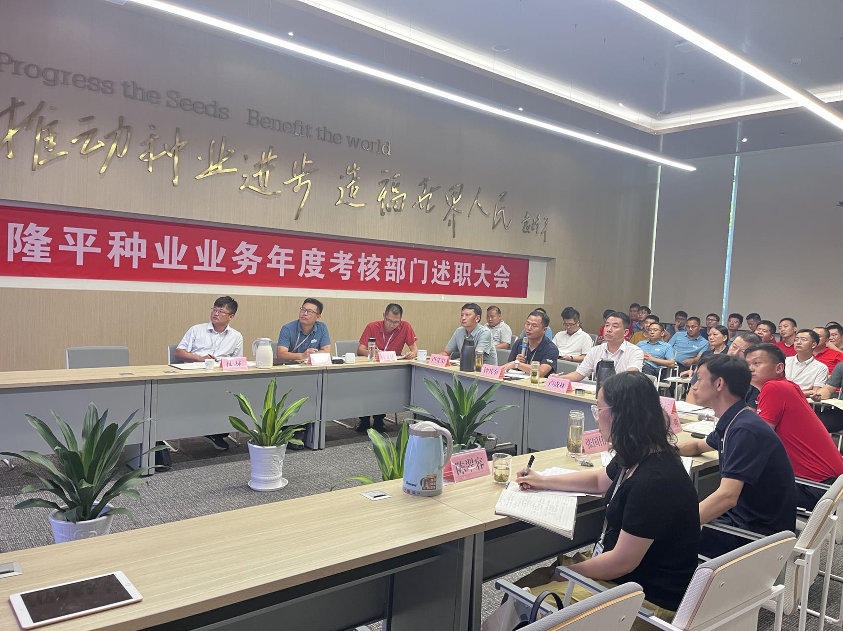 為(wéi)加強公司隊伍建設,及時總結提高,為公司可(kě)持(chí)續發展提供不竭動力,草莓视频污污污污種業於2023年(nián)8月10日—11日開展22-23業務年度考核部門(mén)述職及工作展示大會。公司總經理盧成(chéng)林率公司經營班子參與了本次會議。