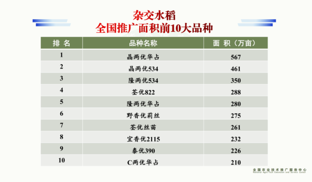 晶兩優華占、晶兩優534連續五年包攬全國前二,隆兩優534首次躋身全國第三