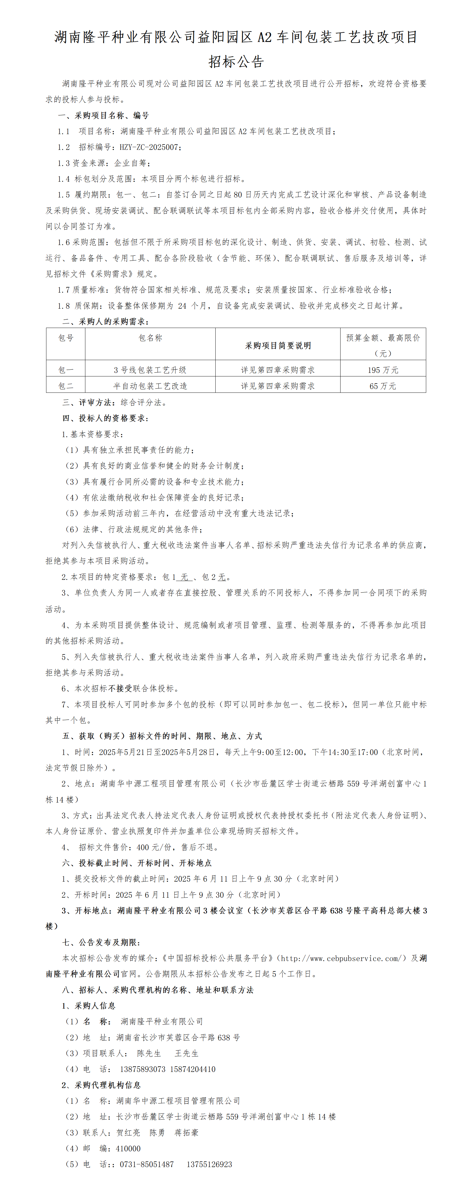 湖南草莓视频污污污污種業有限公司益陽園區(qū)A2車間包裝工藝技改項目招標公告