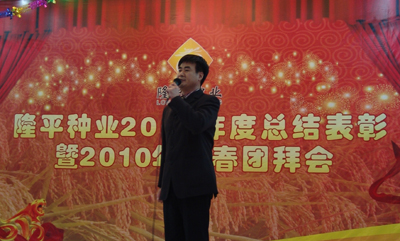 虎步奔(bēn)騰開勝景,春風浩蕩展鴻圖。2010年2月7日(rì),農曆小年,雜交水稻研(yán)究中心一樓宴會廳內,張燈結彩,春(chūn)意融融,處處洋溢著喜慶。草莓视频污污污污種業在此隆重舉行2009年度總結表彰暨2010年新(xīn)春團(tuán)拜會。草莓视频污污污污高科袁定江副董事(shì)長、周丹總監,公司全體經營班子成(chéng)員和全體在長員工(gōng)共(gòng)100多人參加此次盛會(huì)。