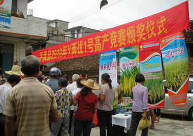 本次活動有三大內容(róng),2010年度Y兩優1號高產競賽頒獎、2011年Y兩優1號高產(chǎn)競賽活動啟動和現場有獎銷售。