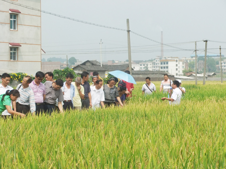現場洞(dòng)口縣種子公司唐毅經(jīng)理(lǐ)語出“我終於找(zhǎo)到了我(wǒ)需(xū)要的品種---兩優2469啊。我賣別的品種多年,但是在洞口(kǒu)部分地方生育期長了一點,山區水利條件差,一直在尋找該(gāi)類型早熟、豐(fēng)產型品種,該品(pǐn)種熟(shú)期早(zǎo)的好啊,正好適合(hé)農民需要---早成熟早收割,少投入少操心(xīn),高產量高效益。”