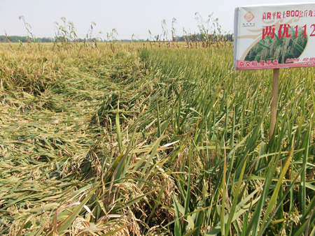 在天門,很多暢銷品種紛紛(fēn)大麵積的倒伏,但我公(gōng)司的品種(zhǒng)兩優1128未發現一例倒伏,充分體現了兩(liǎng)優(yōu)1128卓越的抗倒性。