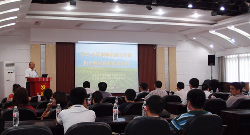 會上,劉愛民研究員就雜交水(shuǐ)稻製種(zhǒng)全程(chéng)機械化實踐和全程機械化技(jì)術研究做了專題報(bào)告。報告就雜交(jiāo)水稻製種全程機械化的必要性和可行性做了分析,並汲取了國內外成功經驗,展示(shì)了我(wǒ)司在開展製種(zhǒng)全程機械化所取得(dé)的(de)研究成果。此次報告既是對我司近年來製種全程機械化探索的成果匯報,也是對(duì)雜交水稻種子產(chǎn)業發展的展望。報告(gào)過(guò)程中,聽取報告的領導和專業人士多次感(gǎn)歎機械化給傳統農業帶來的新機,並充分肯定了我司在雜交(jiāo)水稻製種(zhǒng)全程機(jī)械化進程中所作出的(de)努力。