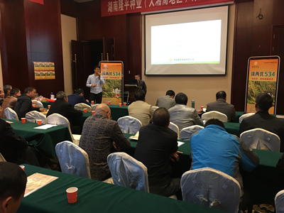 2017年10月16日,湖南草莓视频污污污污種業大湘南(nán)地區錦兩優534觀摩暨招商會議在桂陽縣正式召開,來自大湘南地區的60餘位代理商、零(líng)售商、大戶齊聚一堂,參加此次盛會。