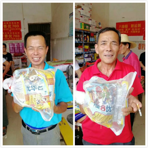 2015年區試,2016年續試(shì),2017年國審,曆經三年試驗示範(fàn),隆8優華占得(dé)到了廣大農戶經銷商的高度認可(kě)。三年磨一劍、今朝露鋒芒,2018年的這(zhè)個夏天八仙稻迎來了屬於它的時刻。 這個夏天最美的風景就是老百姓手握著著豐收的希(xī)望,臉上展露(lù)的笑容。在老(lǎo)百(bǎi)姓的心中八仙稻是這一季豐收的希(xī)望。 "我要6斤","我(wǒ)要9斤","我要20斤",門店裏此起彼伏的聲音裏是老百姓對(duì)隆8優華占的信賴和認可,是(shì)他們對豐收的渴望。 火(huǒ)紅的六月,熱情的農戶。品種這麽多(duō),你需要一個高產高抗米質優的品種,而我就是你最適合的那一個(gè)。一包又一包八仙稻在老百姓的期盼中走進千家萬戶,為他們送去了豐(fēng)收的希望。