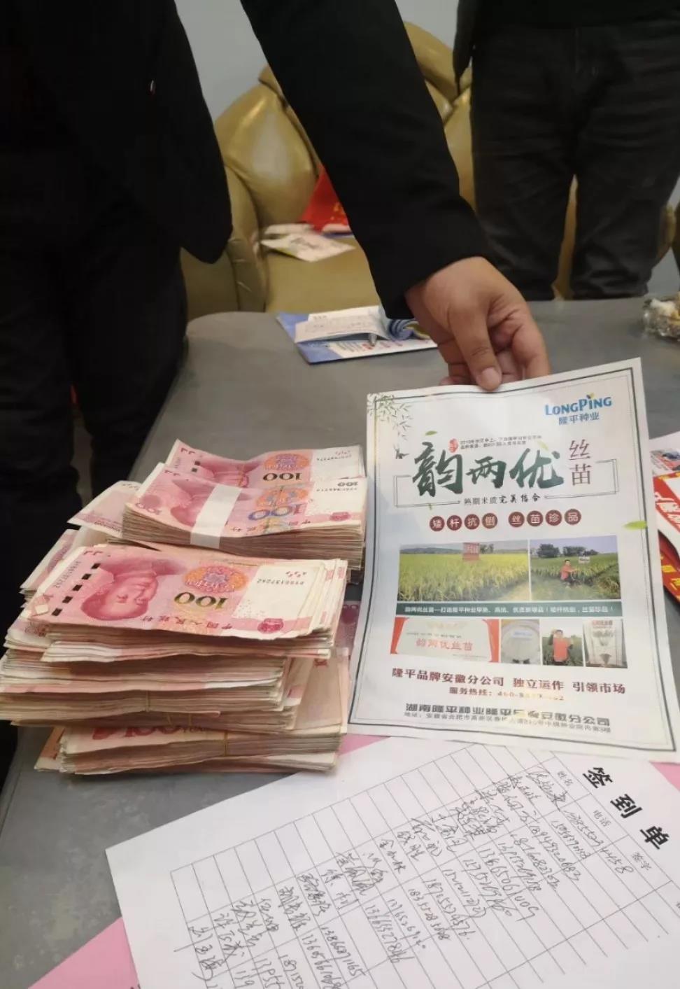 11月26日,河南固始(shǐ)縣觀堂鄉兩個零售商聯動入戶活動,現場入戶晶兩優華占+隆兩優534合計7084袋,預訂10040袋(暫時沒(méi)錢,沒給發種子,算預訂),累計收款12餘萬元!