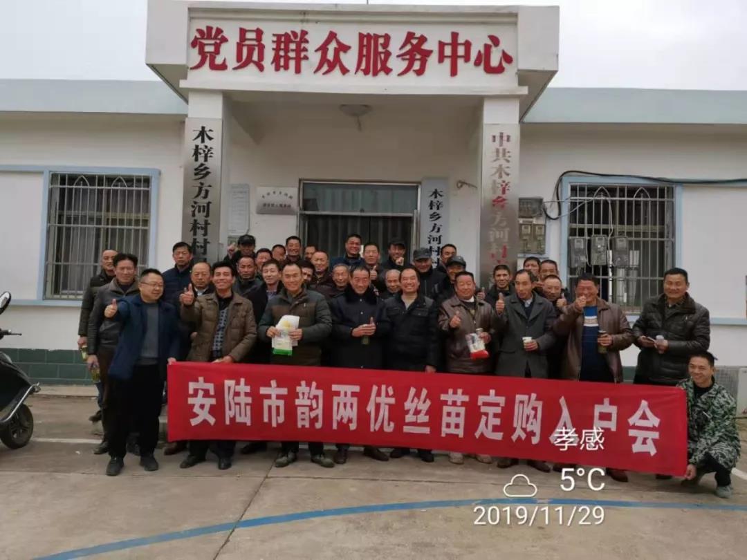 11月29日,湖北安陸韻兩(liǎng)優絲苗定(dìng)購入戶會,到會40餘人,定購近2000斤!