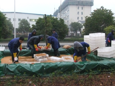 今年的春(chūn)芽(yá)行動公司采取了多點式輻(fú)射周邊的方式,就地催芽,最大程度的減少(shǎo)了因運輸給芽穀帶來(lái)的損傷(shāng)。長沙地區(qū)主要是給(gěi)二一現代(dài)農業催芽,由於二一農業是用(yòng)機械播種,所以(yǐ)對芽穀的要求特別高,芽長1mm以內,根長3mm以內,不能太濕,芽率要達到85%左右,上午7:30、下午1:30需(xū)貨,並且每天供應約1000公斤,連續10天……