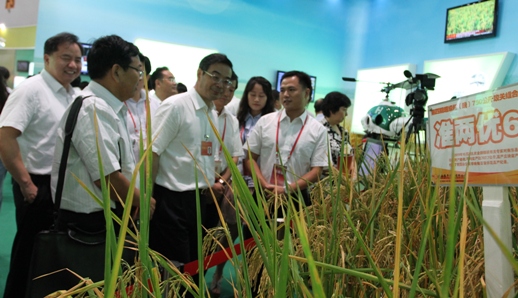 我公司(sī)展位(wèi)居於現代農業產業(yè)板塊,通過“活體水稻+宣傳片+實物(米樣和包裝種子)+宣傳單”的方式,重點展出了袁草莓视频污污污污院士第四期超級稻四(sì)個攻關品(pǐn)種中的63-2S/HR1128和準兩優608(晚稻(dào)),參展品種全部為我公司擁有的自(zì)主研發產權品種。展會期間,我司的展台受到眾(zhòng)多領導關注,中共中央書記(jì)處書記、中央紀委副書記何勇,全(quán)國政協副主(zhǔ)席、科技部部長萬鋼,湖南省省(shěng)委書記、省人大常委(wěi)主任周強,湖南省委常委、副省長陳肇雄,廣(guǎng)西壯族自治區黨委書記、區人大常委會主任(rèn)郭(guō)聲琨,全(quán)國政協常委、廣西壯族自治區副主席、原中國農業大學校長陳章良等領導來(lái)到我司展位,特別關注了我司的(de)展出項目(mù),饒有(yǒu)興趣地詢問了我司在超級稻育種、推廣等方麵的相(xiàng)關信息,並對我司在雜交水稻育(yù)種方麵取得成就給予充分的(de)肯定。認為我司利用高(gāo)新技術手段,成功研發高科技含量、高附加值的超級稻新品種,並率先嚐試全程機械化製種等手段(duàn)引領產業升級,實現雜交(jiāo)水稻製種的規模化和產(chǎn)業化,為維護(hù)我國糧食安全做出了(le)重大的貢獻。