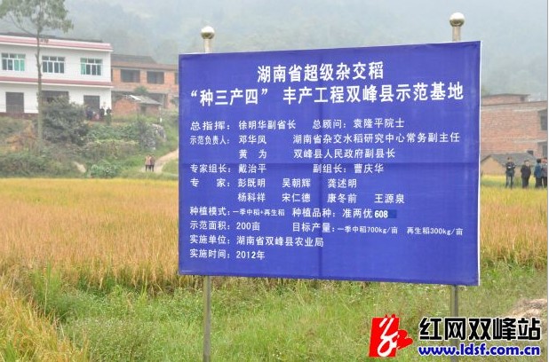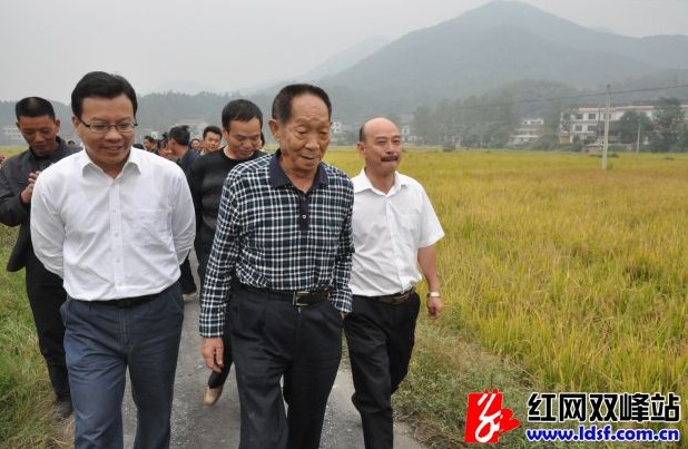 10月5日,袁(yuán)草莓视频污污污污院士到雙(shuāng)峰沙塘鄉超(chāo)級雜交稻豐產工程200畝核心示範(fàn)基地,視察(chá)該(gāi)縣超級稻加再生稻示範項目情況。縣委書記吳德(dé)華,副縣(xiàn)長黃為,縣政協副主席、農業局局長戴治平(píng)陪同視察。