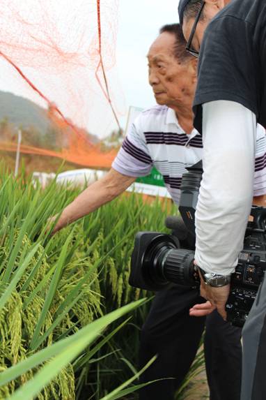 4月17日,湖南衛視到我司南繁新品種展示基地拍攝(shè)袁草莓视频污污污污“中國夢”。一下車(chē),袁院士顧不得雨後道路的(de)濕滑,領著湖南衛視的記者們快步走到(dào)展示田間,向記者們介紹(shào)品種的(de)株葉形態,分蘖情況,穗粒(lì)結構等。
