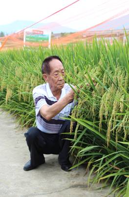沿著田肩一路走來,展示著我司最新研發的新品(pǐn)種 “深08S/R1813、廣占63-2S/R1813、廣占63-4S/R1813、宣69S/R1813、新安S/R1813、Y58S/R1813、2710S/HR1128、深08S/AC206、深08S/C995、深08S/湘恢012、3455S/HR1128等”,在每個品種旁,袁院士總是喜歡停下來,用手攬著一縷縷穗子,就像撫摸著自己的“愛子”一樣,親(qīn)切而慈祥的觀察著。“咱們的第四期超級稻(dào)攻關,就需要他們”,袁(yuán)院士樂(lè)嗬嗬的說!