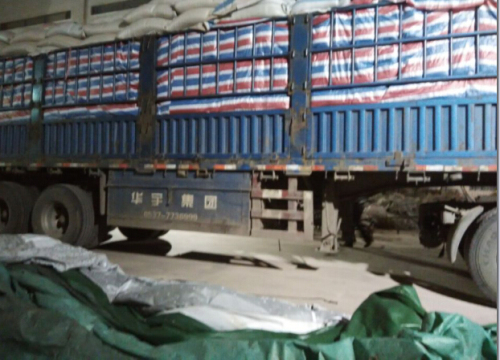 先看倆細節——NO.1小編到達庫(kù)區時,卡車上厚厚(hòu)的防雨油布已經被揭開(圖片下方綠色的物品)。