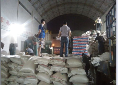 種子到達現場後,等候已久的物(wù)流人即刻開始卸車,左邊是準備好的精選機,種子卸(xiè)下(xià)來後直接精選。