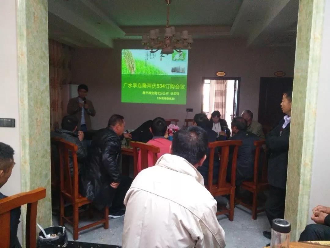 11月(yuè)7日,湖北(běi)廣水李店隆兩(liǎng)優534預定會(huì)議,現場到會50人,訂購近3000斤(jīn)(上半(bàn)年隻賣了2件)!