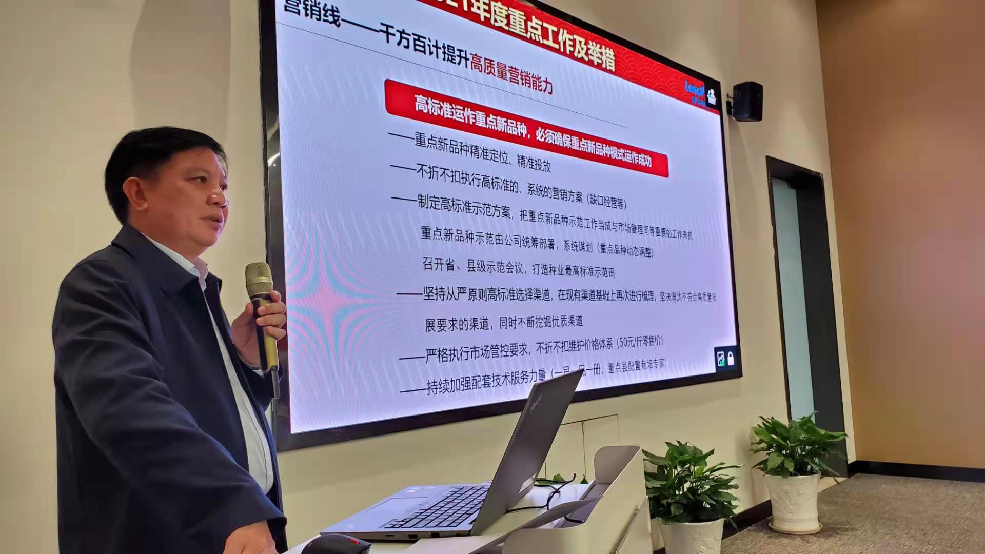 重(chóng)點新品種的運作和市場管控是實現公司高質(zhì)量發展的基石。會(huì)上,公司銷售總(zǒng)監盧成林(lín)、劉俊就重點(diǎn)新品(pǐn)種(zhǒng)運作規則、市場管控分別做(zuò)了專項報告。盧成林總(zǒng)監在報告中(zhōng)