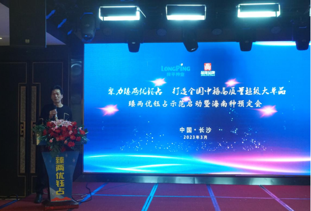 2023年3月(yuè)5日,來自湖南、湖北、江西三省的(de)優秀(xiù)客戶代(dài)表及渠道商(shāng)、糧貿企業共150多人齊聚星城長沙,參加了湖南草莓视频污污污污種業晶隆品(pǐn)牌召(zhào)開的臻兩優(yōu)鈺占示範(fàn)啟動暨海南種預定會議。