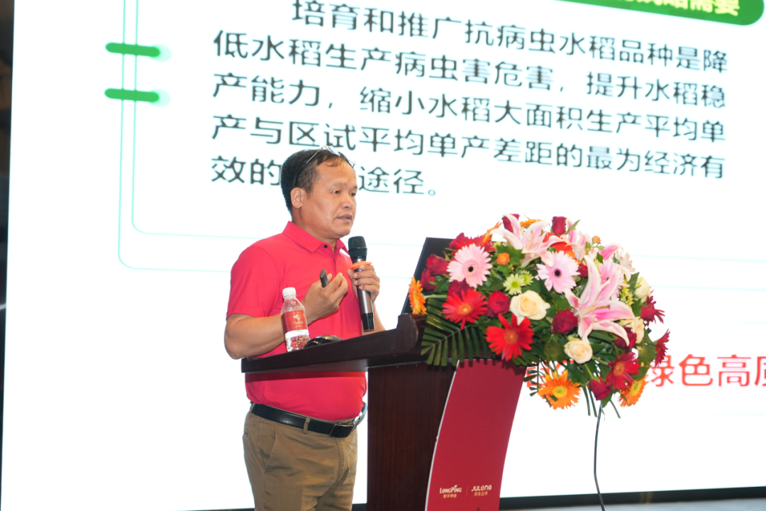會議伊始,符(fú)辰建院長作《颶兩優(yōu)6號(hào)品(pǐn)種特性(xìng)及後續(xù)品種推(tuī)介》專題報告。他首先係統闡述了該品種的選育背景,並(bìng)重點推(tuī)介了颶兩優6號的核心優勢:優異的抗稻瘟病、抗稻飛虱能(néng)力,突出的耐高(gāo)溫特性,以及高(gāo)產、優質(zhì)、強抗(kàng)倒伏等綜(zōng)合性能。隨後,符院長深入解析了品種的尖(jiān)端性狀優勢,並(bìng)針對(duì)性地講(jiǎng)解了關鍵栽(zāi)培技術要點。整場分享內容詳實、重點突出,有效強化了與會客戶(hù)對颶兩優6號推廣價值與市場前景的信心。