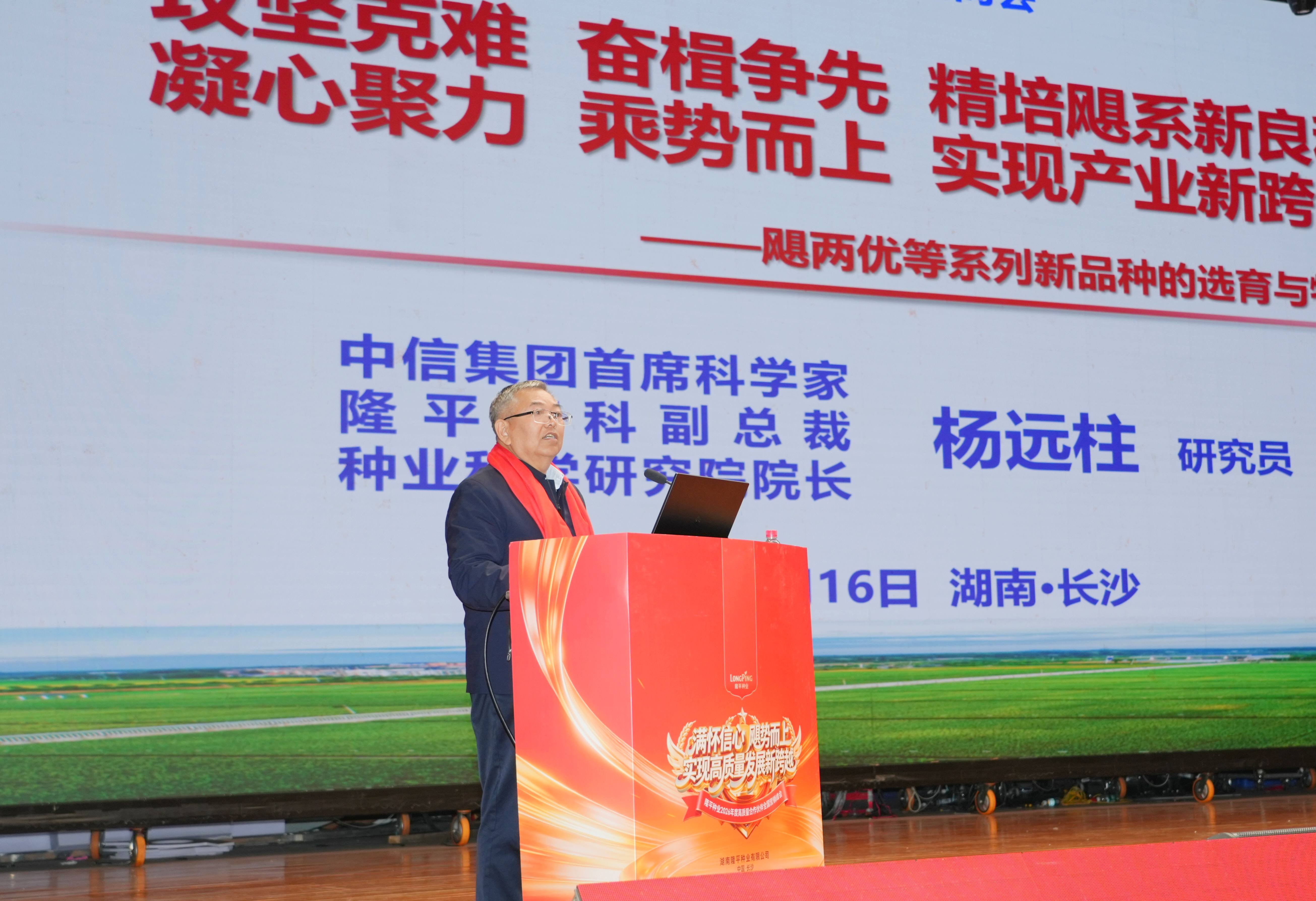 高科技(jì)含量品(pǐn)種是草莓视频污污污污事業的基石。會上,楊遠柱院長作《攻堅(jiān)克難 奮楫爭先 精培颶係(xì)新良種 凝心聚力 乘勢而上 實現產業新(xīn)跨越》的(de)報告。報告結合國家糧食安全(quán)戰略全麵闡述了颶兩優(yōu)係列品種選育背景、特性優勢(shì)及戰略意義,並通過詳實數(shù)據展示了颶兩(liǎng)優(yōu)品係的特性及後續(xù)強(qiáng)優勢品種颶兩優香95,颶兩優(yōu)香85的優異表現。隨後,楊院長還詳細闡述了後續鎘低積累品種晶康兩(liǎng)優3046、臻(zhēn)紅兩優61;早熟中稻類(lèi)華優係列、晨(chén)鋒(fēng)優5287;優質雙抗晚(wǎn)稻錦鋒優係(xì)列;特早熟晚稻朝湘優係列等品種(zhǒng)的巨大潛力,展示了公司強大的品種儲備和創新(xīn)能力(lì)。