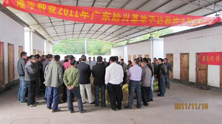 2011年11月10日,我司在廣東始興馬市(shì)鎮堂閣村組織召開了始興基地不達(dá)標種子轉(zhuǎn)商現(xiàn)場會,馬市鎮鎮領導、生產商、技(jì)術員、製種農戶(hù)及我(wǒ)司生產、質監、財務人(rén)員共60餘人參加了此次轉商現場會。